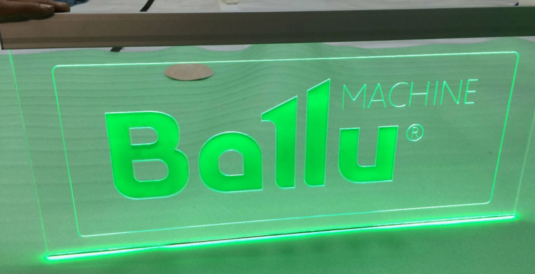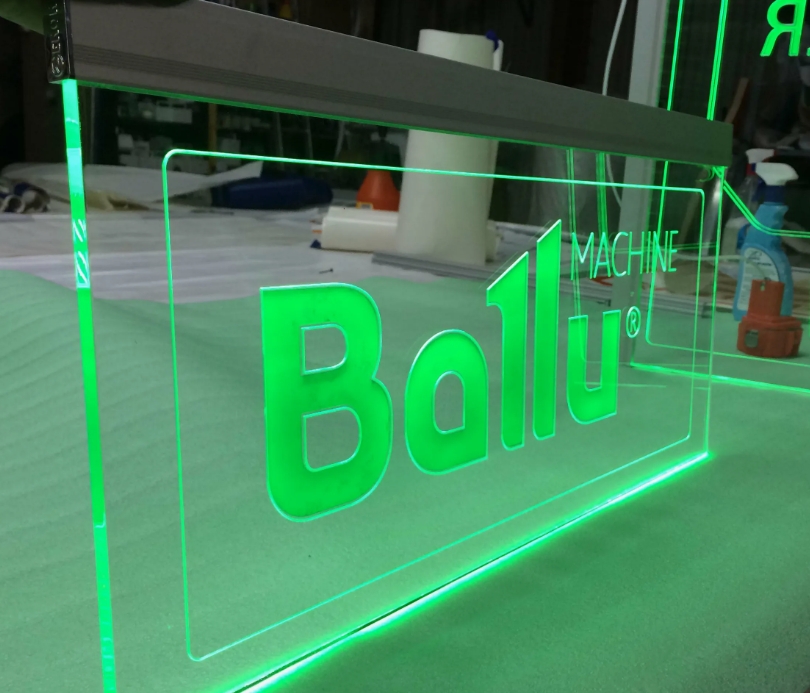 Световая панель – это конструкция из акрилового стекла (обычно толщиной 5-15 мм), на которую изображение наносится методом лазерной или фрезерной гравировки, а затем подсвечивается по торцу. Подсветка делают через торцевую поверхность светодиодной линейкой (LED). Эта технология обеспечивает равномерное свечение и чёткую видимость рисунка, будь то логотип, надпись или декоративная деталь по всей площади панели.